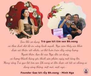 Từ khi dùng trà gạo lứt tim sen và theo đuổi cách ăn uống lành mạnh, Nga thấy cơ thể mình thay đổi rõ rệt, tỉnh táo hơn, năng lượng hơn, từ đó làm việc hiệu quả hơn rất nhiều.
