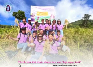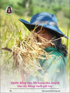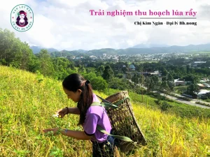 Đến rẫy lúa, ai nấy đều vui và hào hứng quên đi mọi mệt nhọc. Lúc này lúa rẫy đã đến độ chín mùi, người đồng bào đang tiến hành cắt lúa bằng tay để thu hoạch. Chúng tôi được nhìn ngắm lúa rẫy kiên cường giữa đất trời, được trải nghiệm mang gùi gặt lúa và trò chuyện cùng người đồng bào mới thấy được giá trị và những khó khăn, vất vả họ phải trải qua để có được hạt gạo quý.