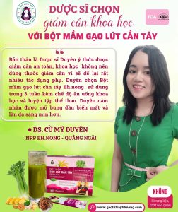 Dưới đây là chia sẻ của một Dược sĩ đang làm Nhà phân phối cho Bh.nong theo chị: “Các bác sĩ khuyến cáo Thuốc giảm cân chỉ dùng cho đối tượng béo phì nghiêm trọng hoặc mắc các bệnh mãn tính do béo phì vì tác dụng phụ rất nhiều. Vì thế chị chọn uống Bột mầm gạo lứt cần tây để giảm cân an toàn, khoa học, tốt cho sức khỏe hơn. Sau 3 tuần uống bột và ăn uống khoa học kết hợp tập thể dục bụng chị đã xuống 4cm.”