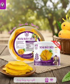 Từ những quả xoài tươi chín mọng được hái trực tiếp tại vườn, được sấy khô tự nhiên, không hương liệu, có vị chua nhẹ, ngọt thanh, thơm lừng và mềm dẻo ăn siêu cuốn – món ăn vặt lành mạnh cho cả nhà.