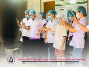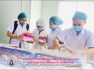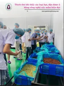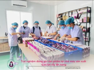 Trước khi bước vào thăm quan nhà máy chúng tôi được phát trang phục bảo hộ gồm mũ đội đầu, áo bluse trắng và dép. Chúng tôi nghe “cô gái Bh.nong” – Minh Nga giới thiệu về nhà máy và quy trình sản xuất ra những sản phẩm Gạo lứt rẫy Bh.nong chất lượng, thơm ngon. Từ chái bếp ngày đầu khởi nghiệp đến nhà xưởng mới được xây dựng sạch sẽ, khang trang. Thú vị nhất là mọi người được trải nghiệm tham gia vào khâu đóng gói sản phẩm tại nhà máy.