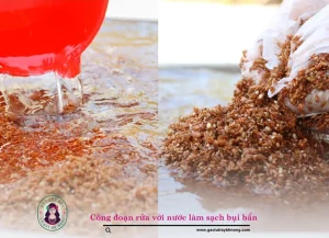 Gạo sau khi sàng lọc xong sẽ được rửa với nước sạch và để cho khô ráo mới đem rang. Điều đặc biệt mang lại hương vị thơm ngon đặc trưng trong tách trà gạo lứt ở Bh.nong là nhờ vào công đoạn rang thủ công này. Mỗi lần rang chỉ 1 lượng rất nhỏ, tầm 200g với sự khéo léo, tỷ mỹ của nhân công khuấy đảo liên tục trong 20 phút giúp gạo chín kỹ và chín đều; vừa rang vừa quan sát điều chỉnh độ chín của hạt gạo theo ý muốn.