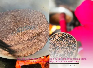 Tương tự đậu đen xanh lòng cũng thế, những hạt đậu quê do bà con địa phương trồng cũng được chọn lựa kỹ rửa sạch và rang trên than củi cho giòn thơm.