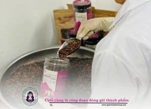 Tiếp đến là công đoạn phối trộn hai nguyên liệu này với nhau theo tỉ lệ chuẩn nhất và đem đóng gói thành phẩm. Khi pha bạn chỉ cần cho 3-4 muỗng canh trà vào bình chứa 500ml nước sôi đậy kín ủ trong 15-30 phút là có ngay tách trà thơm ngon bùng cháy.